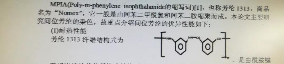 芳綸是一種高科技特種纖維,它具有優異的力學性能,穩定的化學性質和理想的機械性能。它的全稱是“芳香族聚酰胺纖維”。芳綸和脂肪族聚酰胺纖維(如尼龍66)相比,由于在大分子鏈中以芳香基代替了脂肪鏈而柔性減小,剛性增大,反映在纖維性能方面則是耐熱性能增強,初始模量顯著增大[1]。