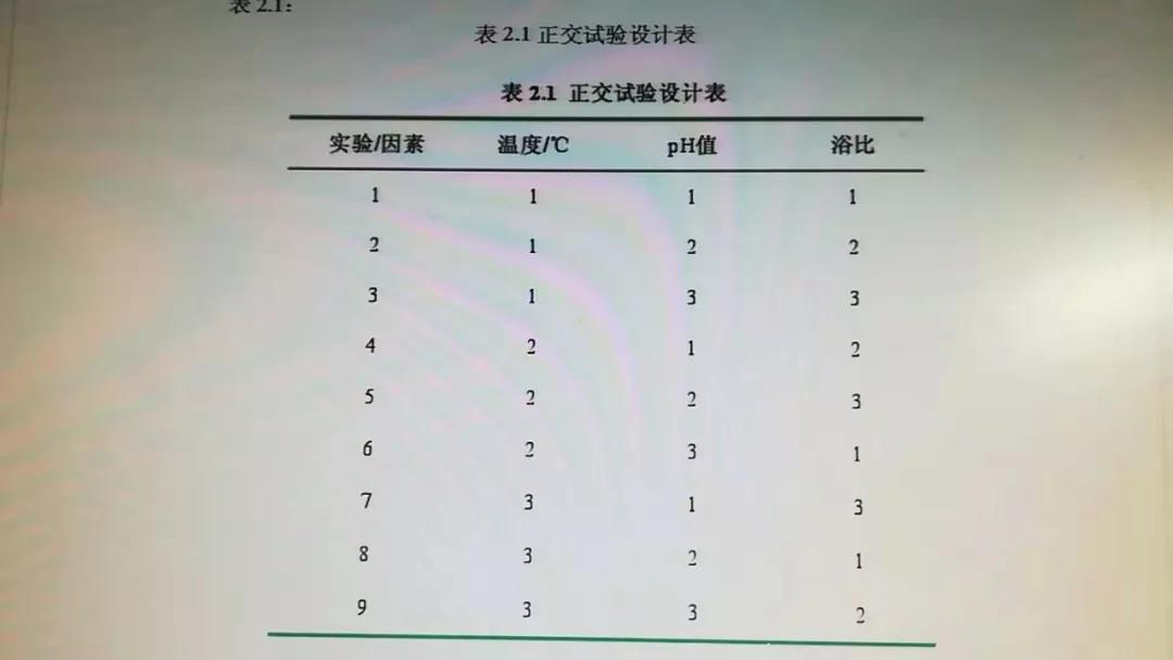 固定染料用量2%(o.w.f.)和染色時間60min,以染色溫度(130℃、135℃、140℃)、pH值(4.5、5.0、5.5)和浴比(1:15、1:20、1:25)進行三因素三水平正交試驗,正交試驗設計見